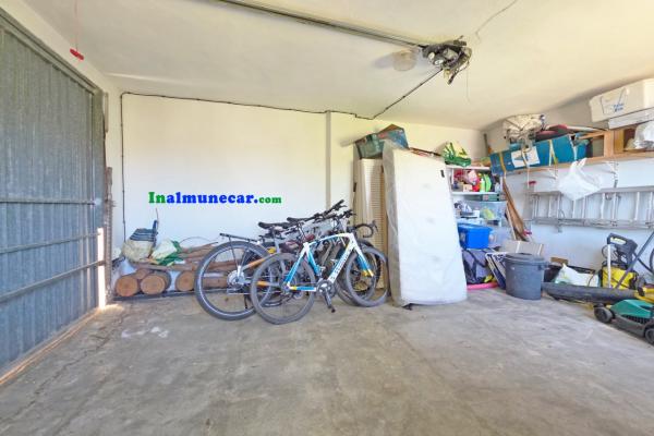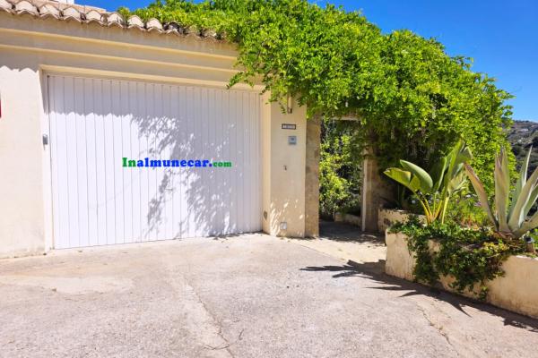 En la entrada a la propiedad nos encontramos un garaje de 24 m² equipado con puerta eléctrica y espacio para un vehículo. Una puerta nos conduce bajando unas escaleras rodeadas vistas y jardín nos conduce a la entrada de la vivienda principal.
