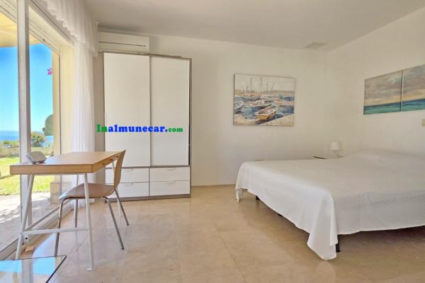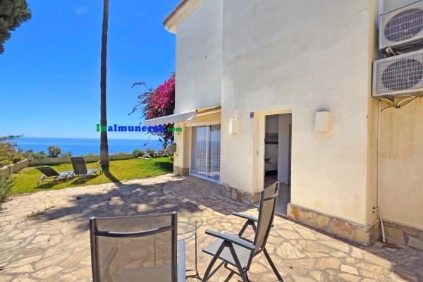 Debajo de la vivienda principal se encuentra un apartamento independiente de 37 m² , se compone de dos dormitorios y baño completo y se comunica con un amplio jardín y vistas igualmente despejadas al mar.